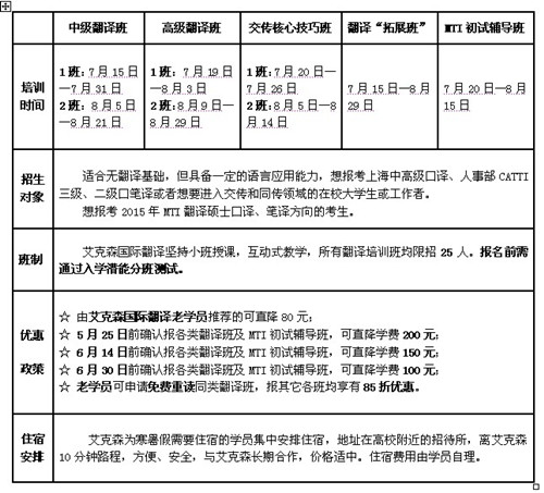 口译培训班、笔译培训班、